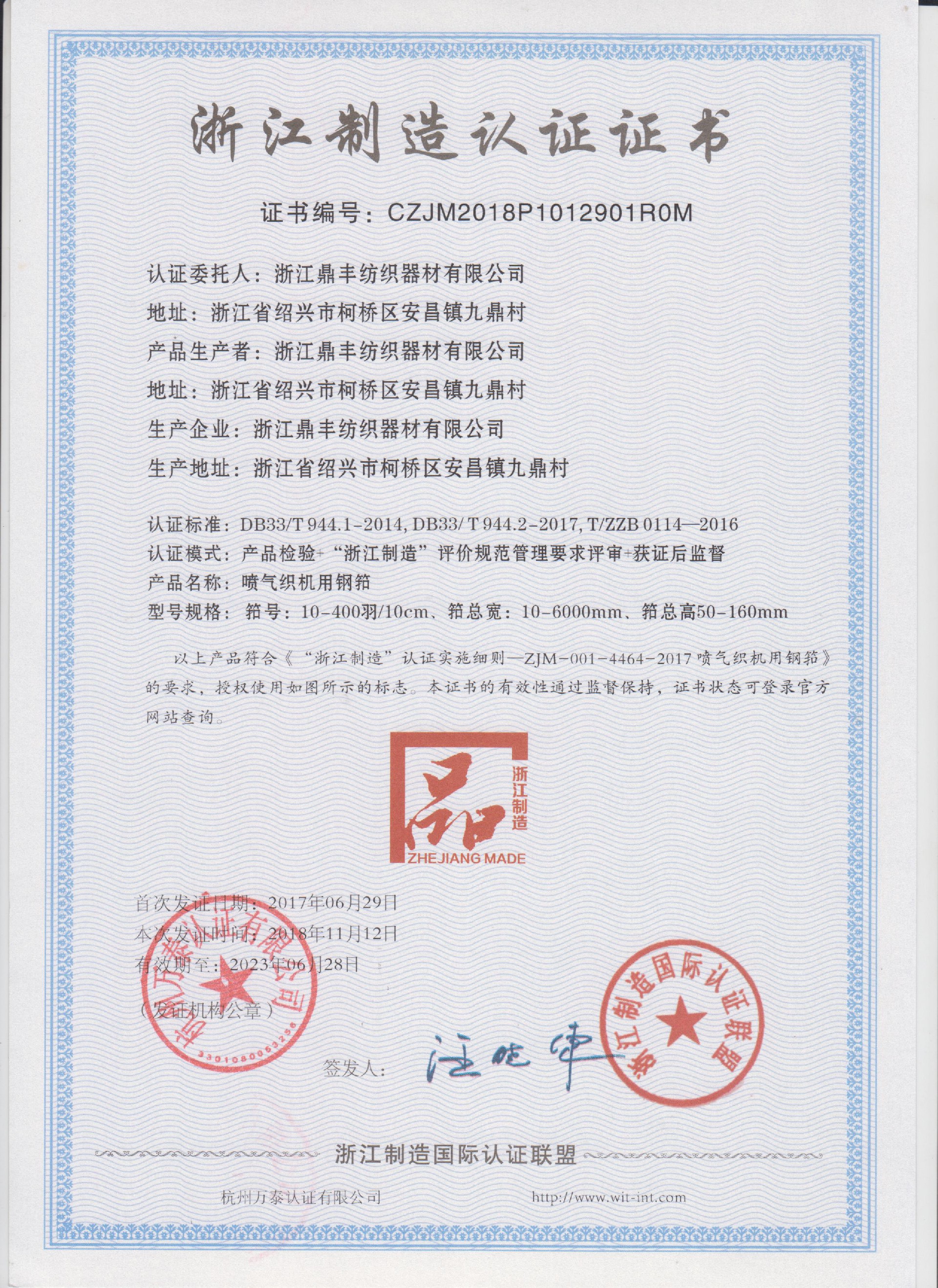 公司現(xiàn)有固定資產(chǎn)6000余萬元,員工300余人,現(xiàn)具有年產(chǎn)噴氣異型筘12萬米,劍桿筘32萬米,噴水筘5萬米,綜框20萬片,鋼片綜2億片,停經(jīng)片1.5億片, 織軸1.2萬套的生產(chǎn)能力。公司“越泉”商標(biāo)被評為“中國馳名商標(biāo)”。公司通過ISO9001 :2015國際質(zhì)量體系認(rèn)證,ISO14001:2015國際環(huán)境管理體系認(rèn)證,ISO45001:2018國際職業(yè)健康安全管理體系認(rèn)證,噴氣織機(jī)用鋼筘和織機(jī)用鋁合金綜框獲得“浙江制造”品牌認(rèn)證,公司擁有自營進(jìn)出口權(quán),產(chǎn)品暢銷全國并遠(yuǎn)銷印度、巴基斯坦、土耳其、埃及、哥倫比亞、意大利等國家和地區(qū)。